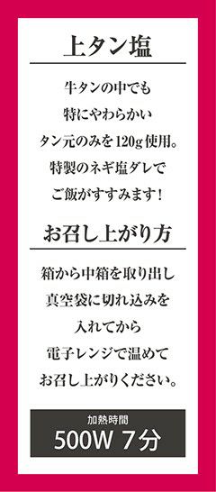 ■原材料・・・ご飯(国産米)、牛タン(豪州産)、ネギ塩タレ、ごま/調味料(アミノ酸等)、(一部に小麦・乳成分・牛肉・ごま・ゼラチン・大豆・鶏肉・豚肉を含む)